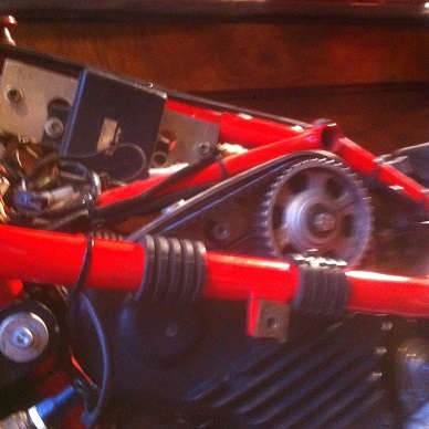 Après démontage du réservoir et du carénage j'accède à la poulie d'admission