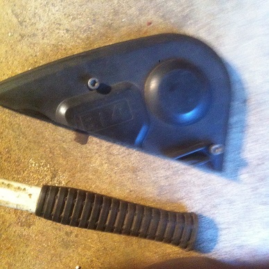 Je viens de démonter les 2 carters plastiques de la poulie (pas besoin de couper le supérieur en 2, il s'enlève facilement entier aussi).