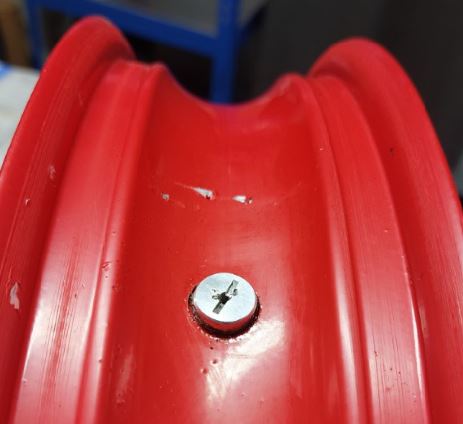 J'ai déglacé les zones à l'intérieur de la jante qui le méritaient, remis un voile de rouge dedans, un voile de vernis, un peu de colle époxy bicomposant localement sur les zones louches de la partie centrale hors contact avec le pneu mais qui montraient une ou des porosités de surface.