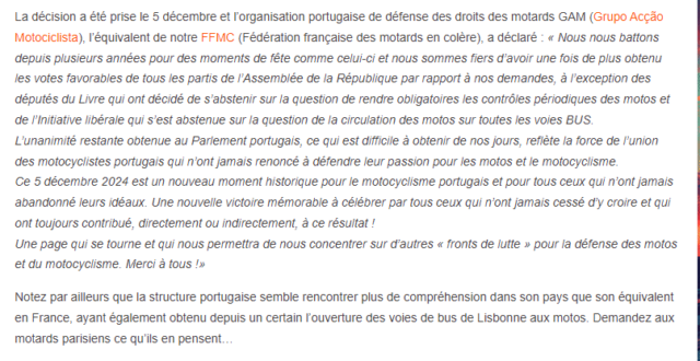 Et puis surtout je vais vous donner cette info, l'organisme comparable à la FFMC au Portugal viens d'obteenir l'annulation de contrôle technique chez eux. Comme quoi c'est possible.