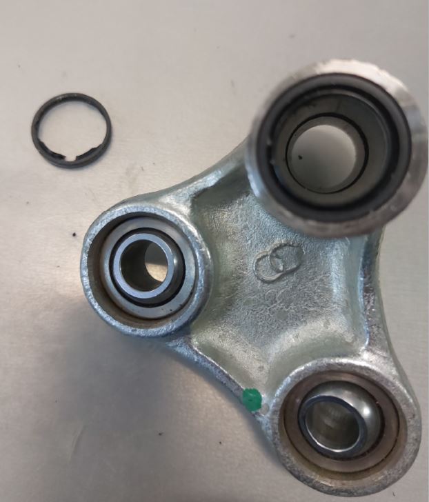Voici comment Gilera "graisse" à sec les rotules acier/acier du basculeur, et l'état des joints Spy desséchés qui sont sur l'axe du haut à droite contenant les bagues Permaglide: