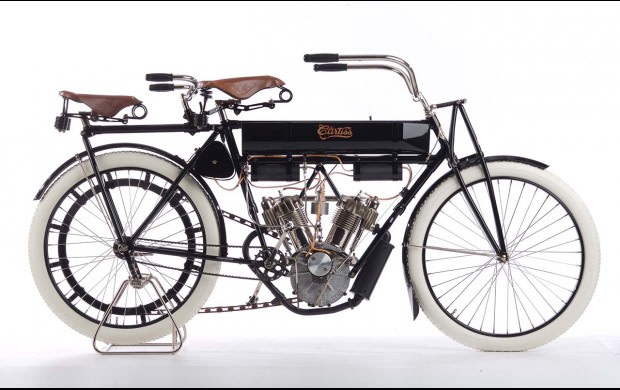 ce même personnage invente aussi le VTwin pour pouvoir doubler la puissance de son monocylindre, il créa même un Trois cylindre sur le même principe, Il a construit aussi en 1908 une moto avec un V8 qui à roulé à 136,3 milles (219,4 KM/h) sur une plage de Floride, record pas homologué pour raison administrative, mais peu importe pour lui ce moteur est monté dans un aéroplane, il va se consacrer à l'aviation par la suite, Curtiss Aircraft c'est lui, il va fournir USAAF dans les 30/40. il meurs très jeune hélas.