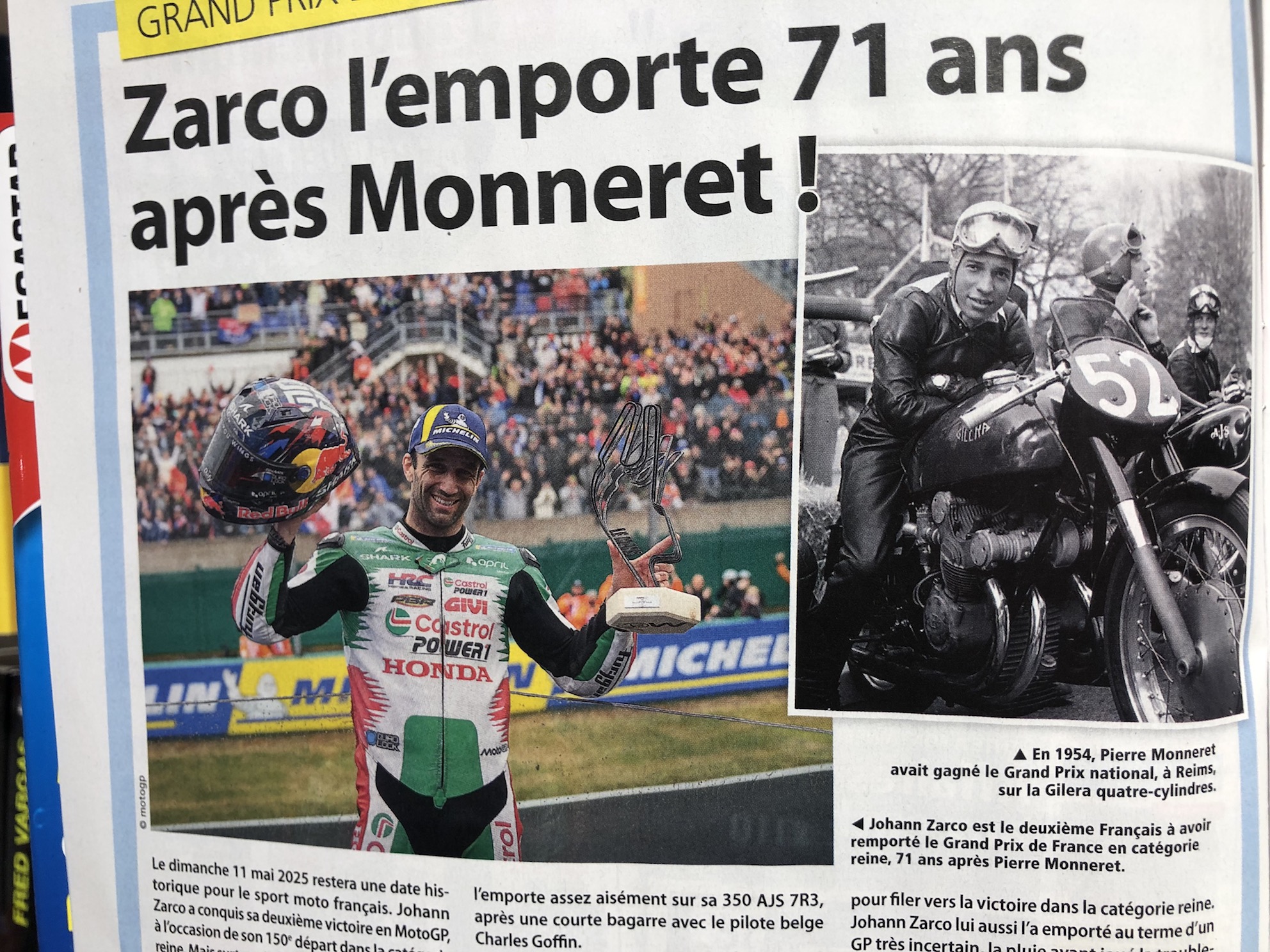 La dernière fois qu'un français a gagné le GP de France en catégorie reine c'était sur Gilera !