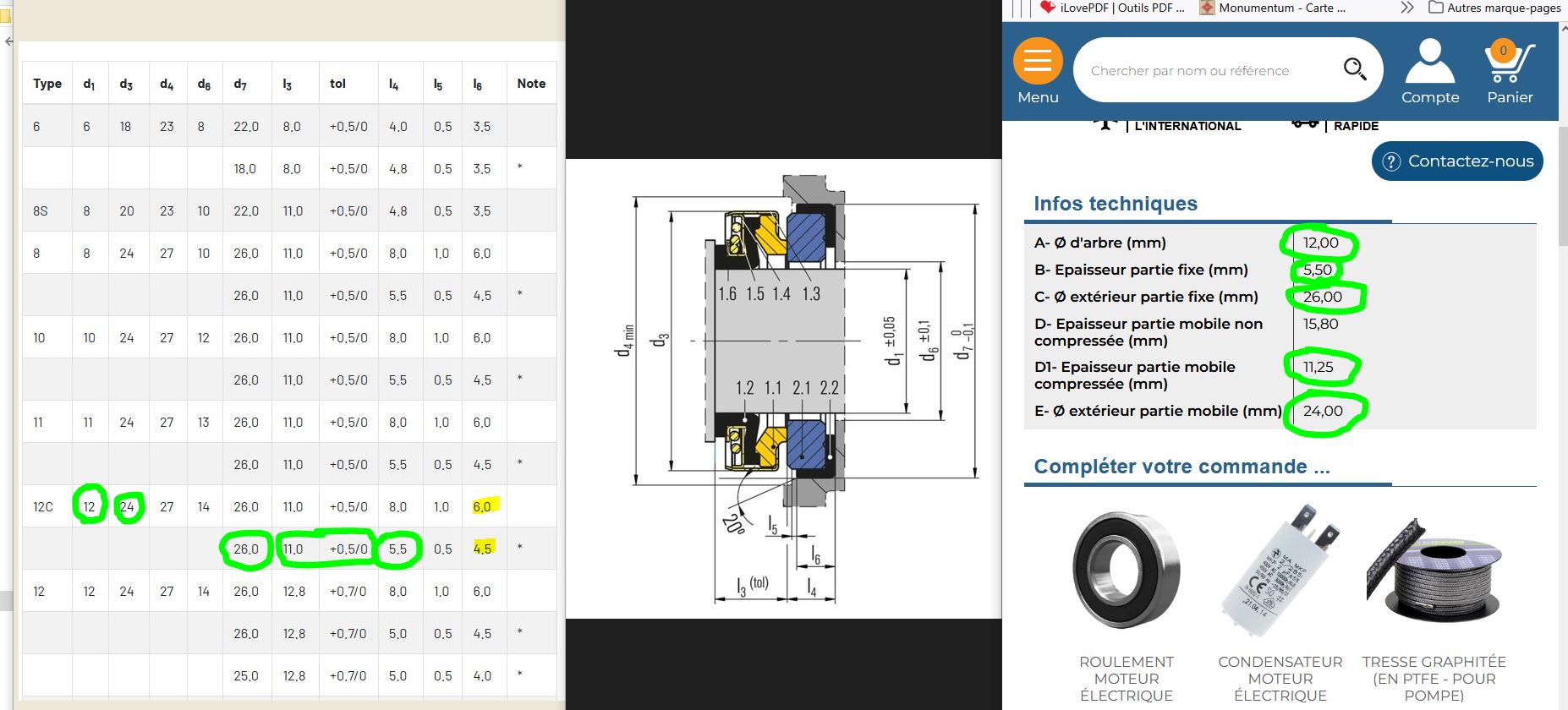 Merci, ça pourrait bien être ça, mais il y a 2 variantes dans le catalogue Burgmann, on va supposer que c'est celle avec l6=4,5mm qu'il faut, car à priori c'est elle qui correspond le plus au joint de ton lien: