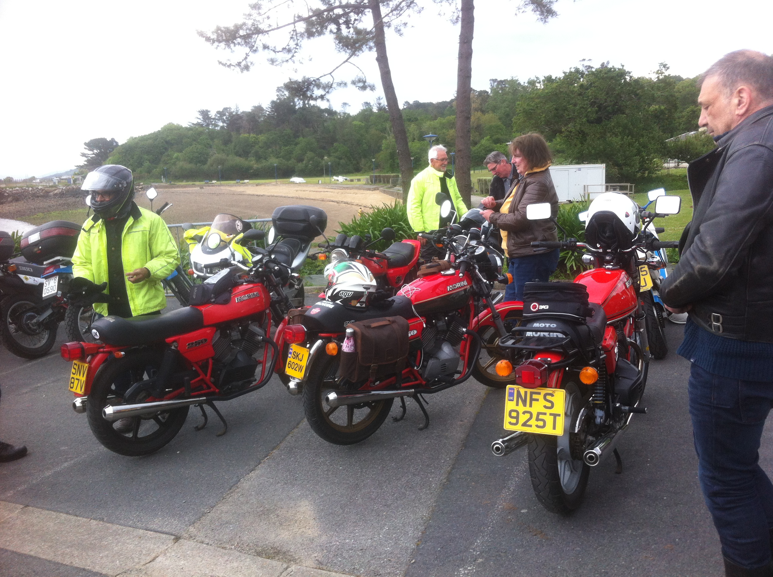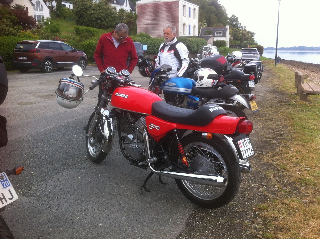 Et puis franchement les seuls qui sont arrivé par la route de loin sur leurs motos c'est les Anglais avec des 250 et 350 bicylindre ainsi qu'une des leurs avec une 125 H, et un Français qui vie en Irlande sur une 250 Settebello des années 60. presque tous ont d'autres projets en France cette semaine. il y a même un couple qui descend en Savoie sur leurs deux 250 twin.